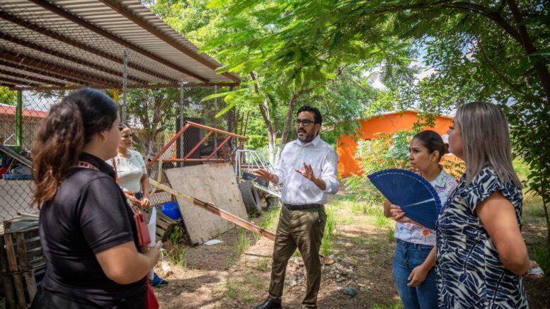 Durante un recorrido por el Jardín de Niños Josefa Ortiz de Domínguez, en la colonia Campesina El Barrio, el presidente municipal Juan de Dios Gámez Mendívil acordó con el comité de madres y padres de familia realizar mejoras en el acceso, el acondicionamiento del patio y un área de estacionamiento.