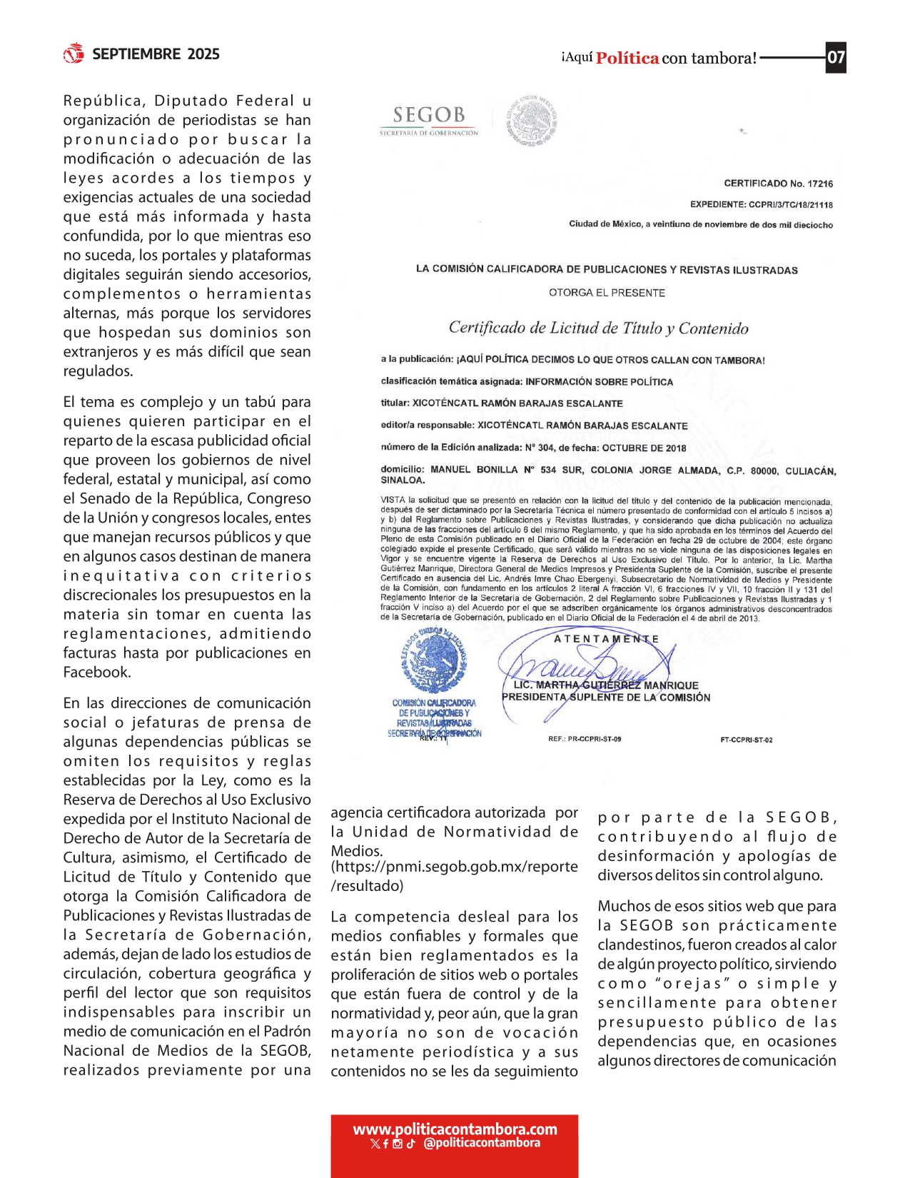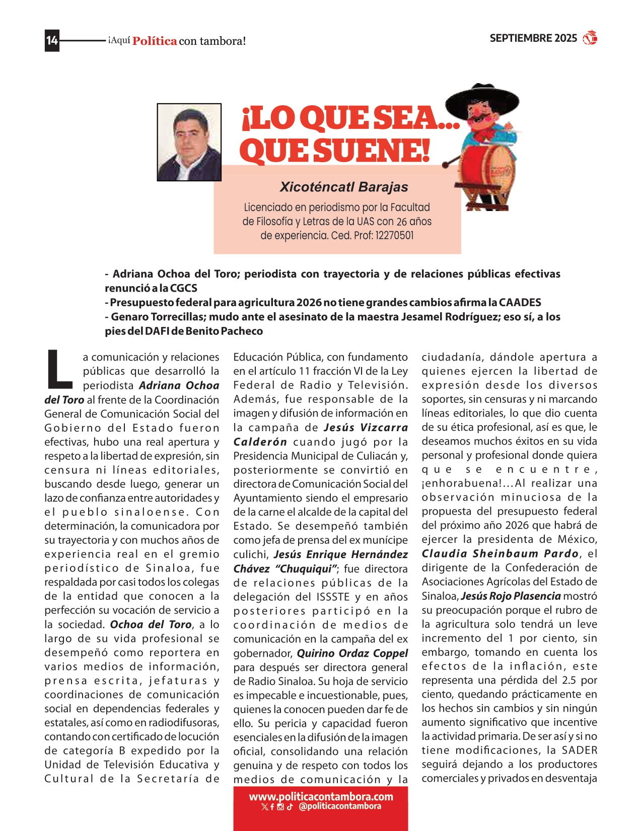 REVISTA SEPTIEMBRE 2025 Posted By: PCT 25 septiembre, 2025 Comparte esto: Haz clic para compartir en Facebook (Se abre en una ventana nueva) Facebook Haz clic para compartir en X (Se abre en una ventana nueva) X Haz clic para compartir en Telegram (Se abre en una ventana nueva) Telegram Haz clic para compartir en WhatsApp (Se abre en una ventana nueva) WhatsApp Comentarios Comentarios